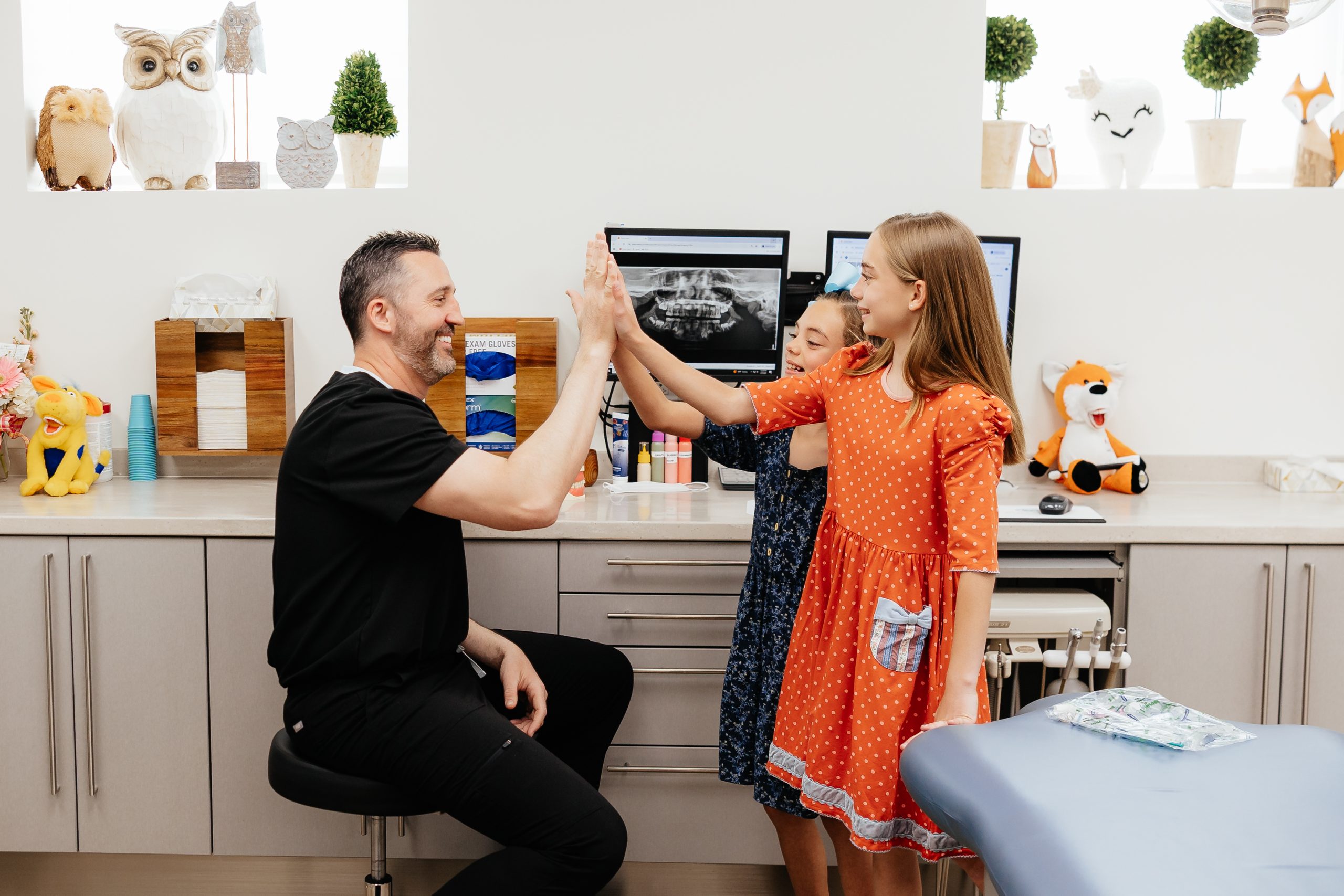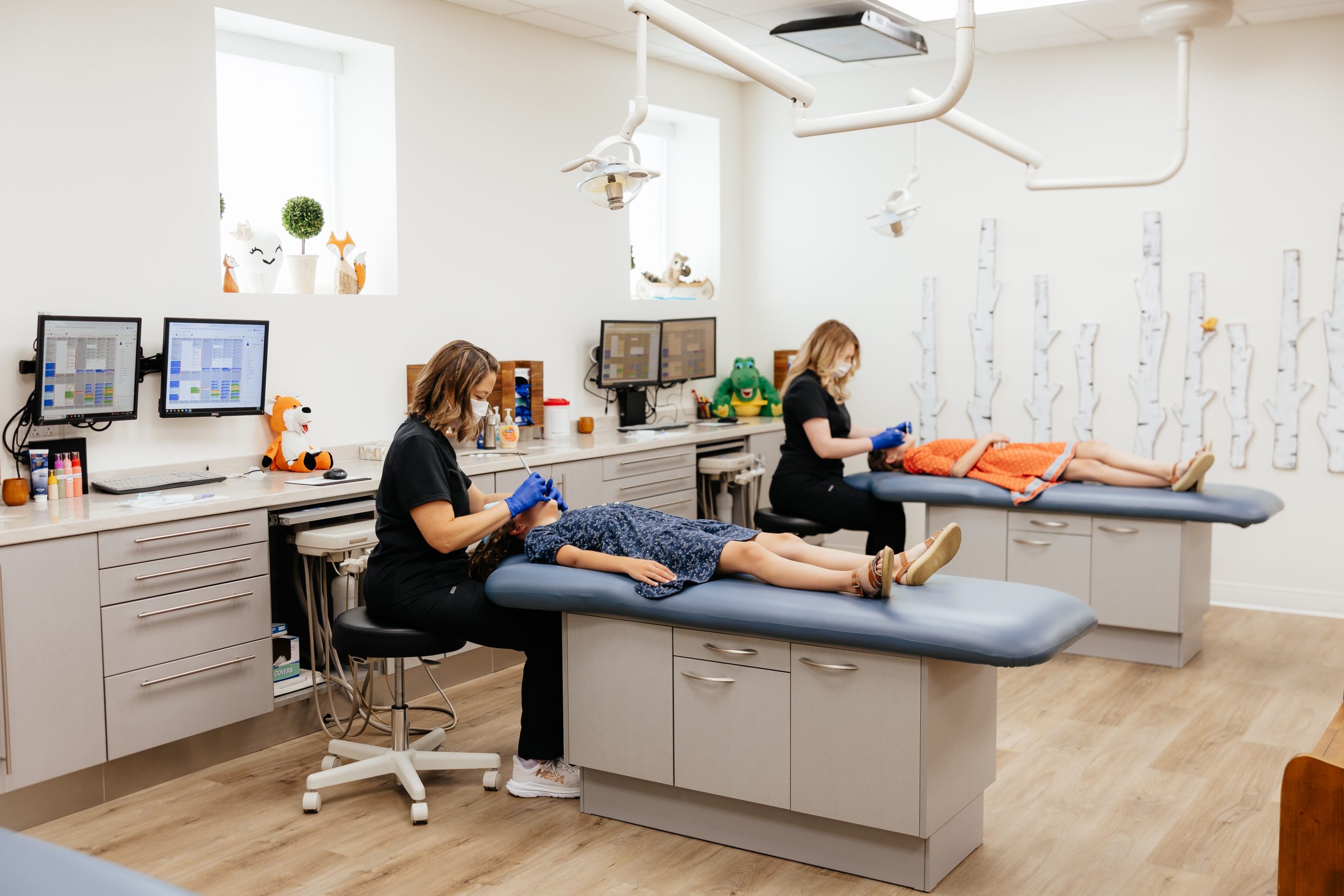 As pediatric dental specialists, our office environment is intended to be a safe and happy place for your child. Our motto is “Dream Big, Smile Bright!” Different from other dental offices, with televisions on the ceiling, fun prizes for each child, a child-specific waiting area, and services geared specifically for each individual child patient, we hope to build a community of children confident and happy for their dental appointments!